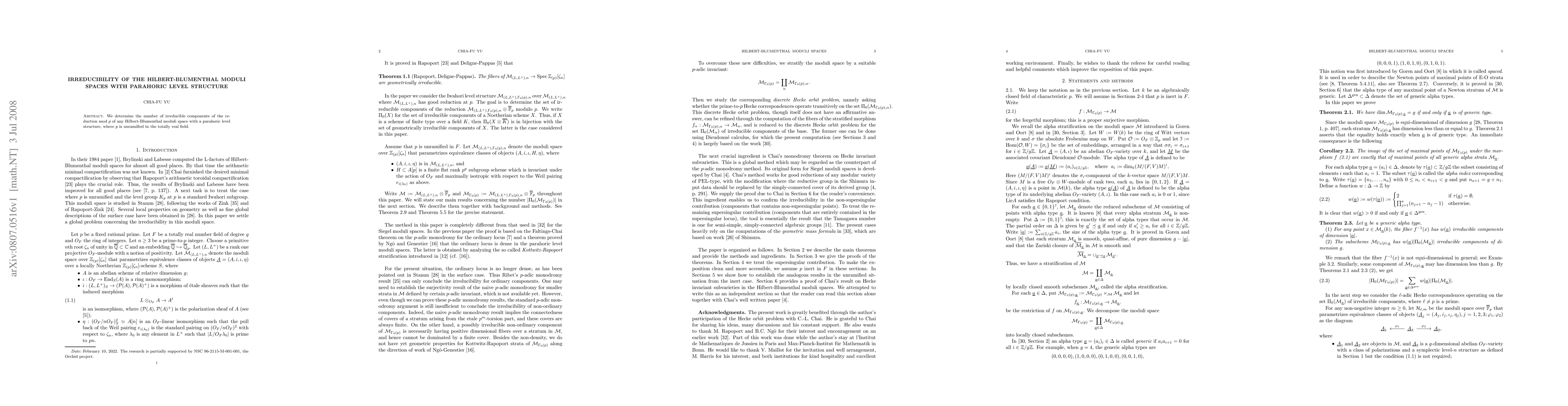 This research identifies the count of irreducible components in the reduced form modulo p of Hilbert-Blumenthal moduli spaces, featuring parahoric level structures, under the condition that p is unramified in a totally real field.