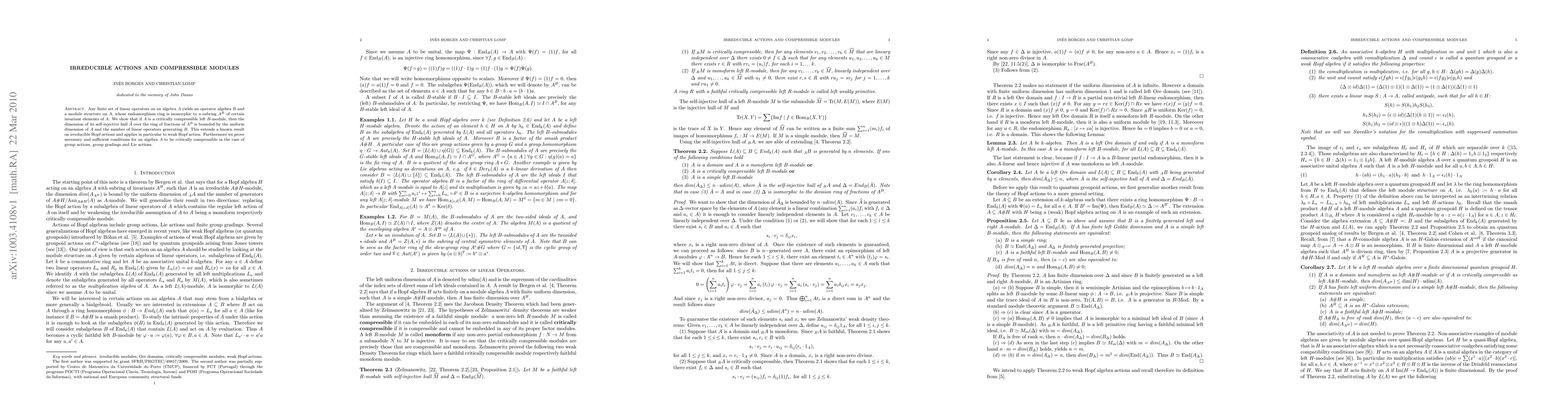 Any finite set of linear operators on an algebra $A$ yields an operator algebra $B$ and a module structure on A, whose endomorphism ring is isomorphic to a subring $A^B$ of certain invariant elements of $A$. We show that if $A$ is a critically compressible left $B$-module, then the dimension of its self-injective hull $A$ over the ring of fractions of $A^B$ is bounded by the uniform dimension of $A$ and the number of linear operators generating $B$. This extends a known result on irreducible Hopf actions and applies in particular to weak Hopf action. Furthermore we prove necessary and sufficient conditions for an algebra A to be critically compressible in the case of group actions, group gradings and Lie actions.