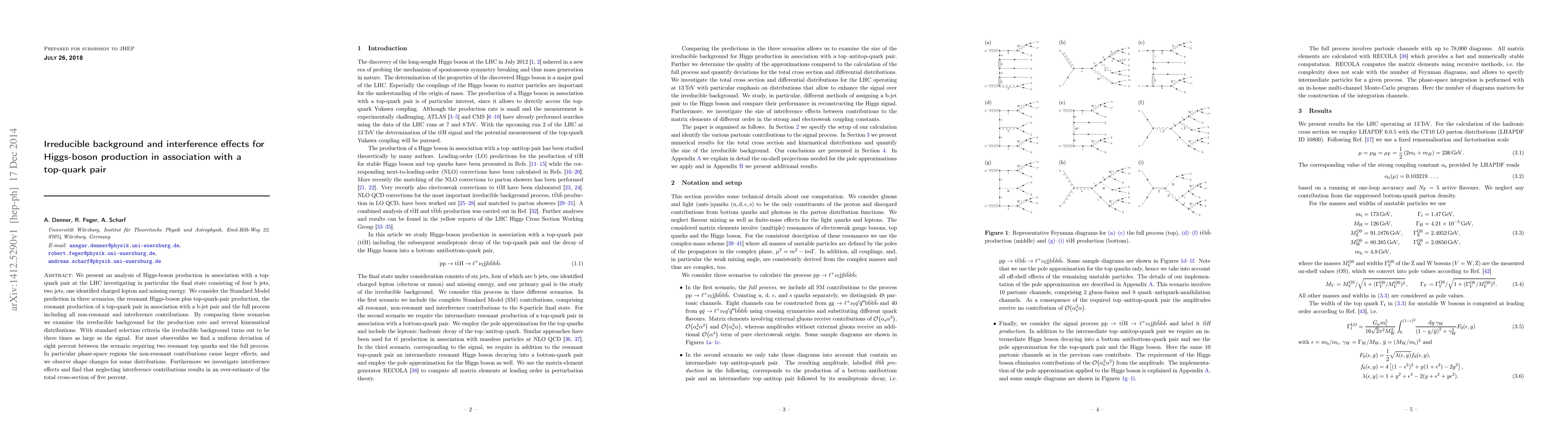 This paper analyzes Higgs-boson production in association with a top-quark pair at the LHC, focusing on the irreducible background and interference effects. It finds that the irreducible background is three times larger than the signal, and neglecting interference contributions overestimates the total cross-section by five percent.