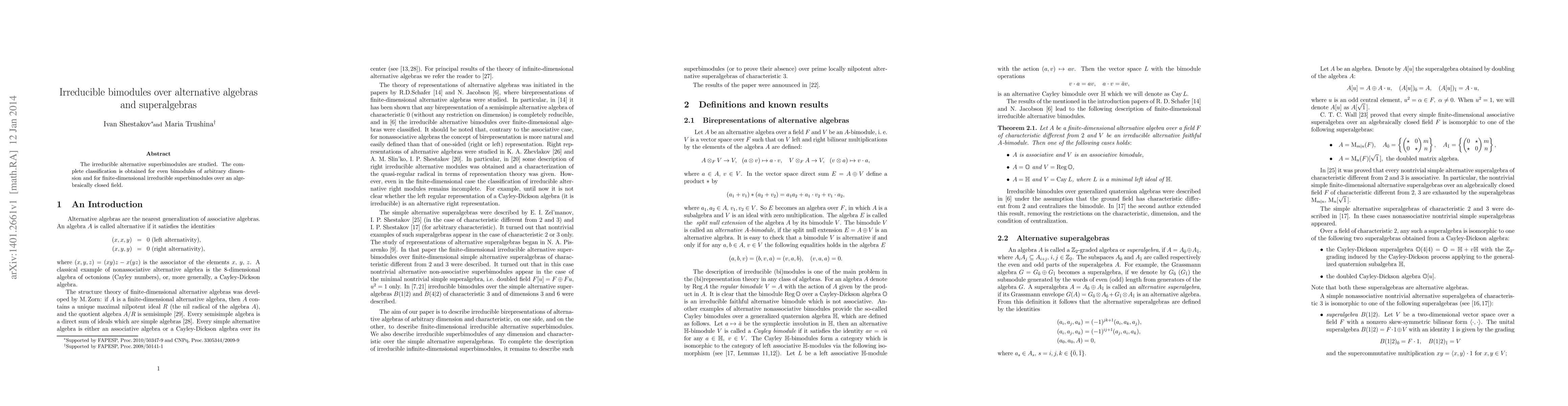 This research classifies irreducible alternative superbimodules, providing a complete list for even bimodules of any dimension and finite-dimensional irreducible superbimodules over an algebraically closed field.