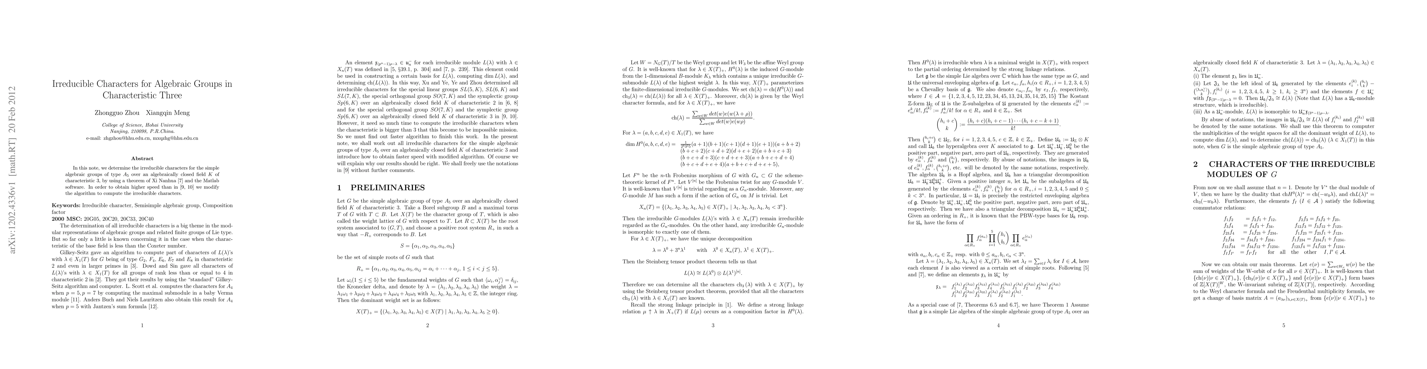 In this note, we determine the irreducible characters for the simple algebraic groups of type $A_5$ over an algebraically closed field $K$ of characteristic 3, by using a theorem of Xi Nanhua and the Matlab software. In order to obtain higher speed than in Jiachen et al we modify the algorithm to compute the irreducible characters.
