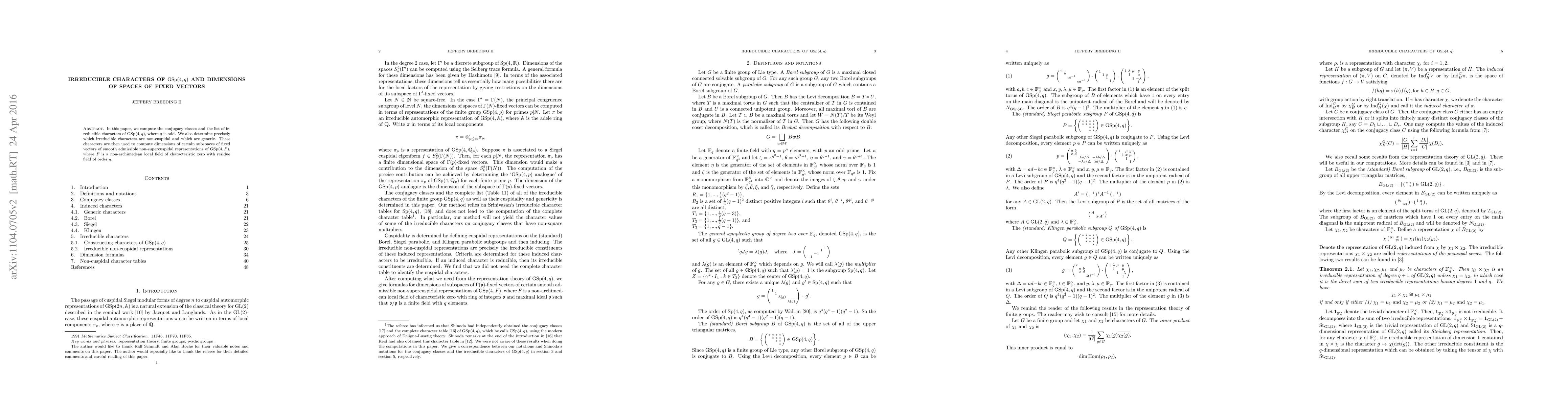 Researchers computed conjugacy classes and irreducible characters of GSp(4,q) for odd q, determining non-cuspidal generic characters to calculate dimensions of fixed vectors in certain representations.