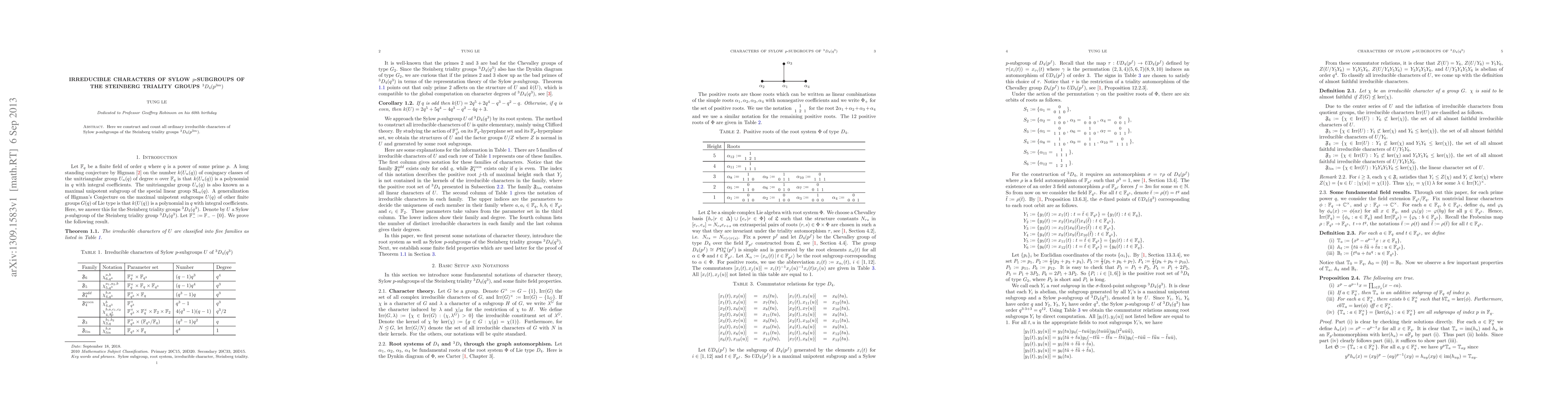 Summary: This paper constructs and enumerates all ordinary irreducible characters of Sylow $p$-subgroups for the Steinberg triality groups ${}^3D_4(p^{3m})$. The focus is on understanding the character theory of these groups.