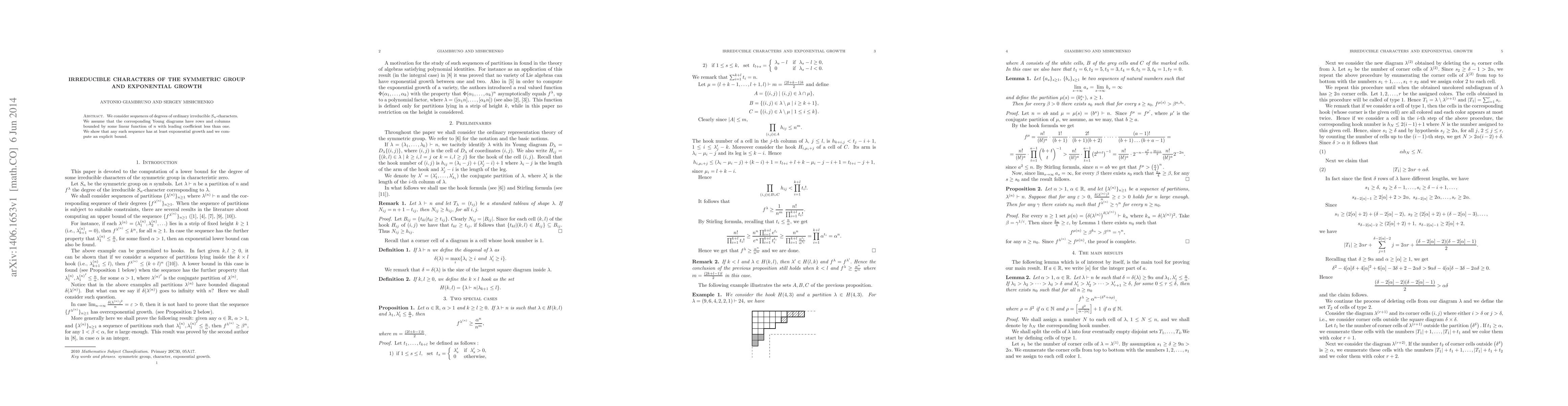 This research paper shows that sequences of degrees of ordinary irreducible S_n-characters with certain constraints exhibit exponential growth, with an explicit bound provided for the upper limit of such growth.