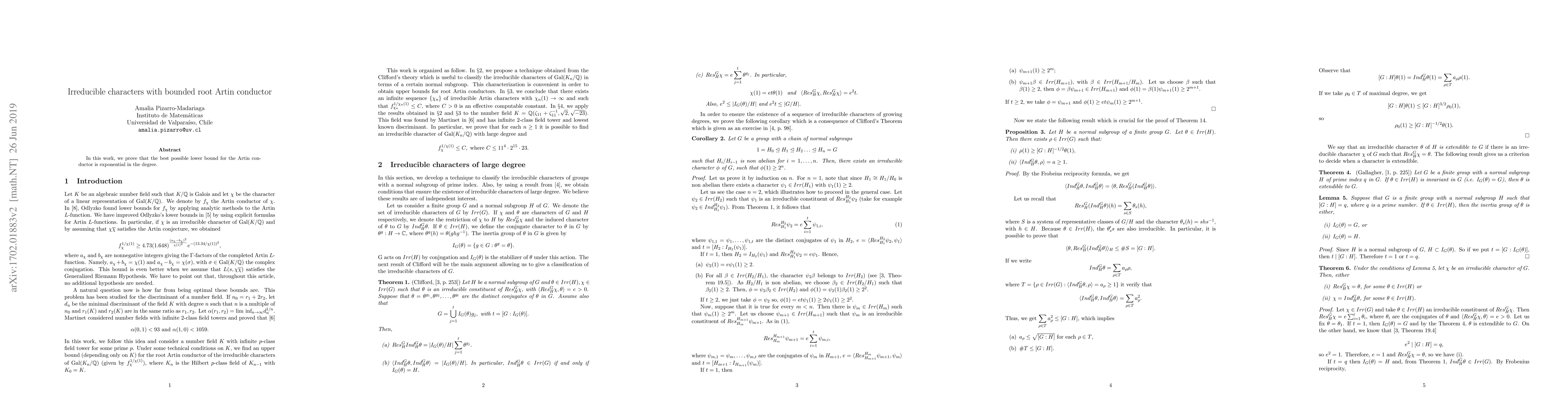 This research proves the Artin conductor's growth is at most exponential with respect to the character's degree, focusing on irreducible characters with bounded root Artin conductor.