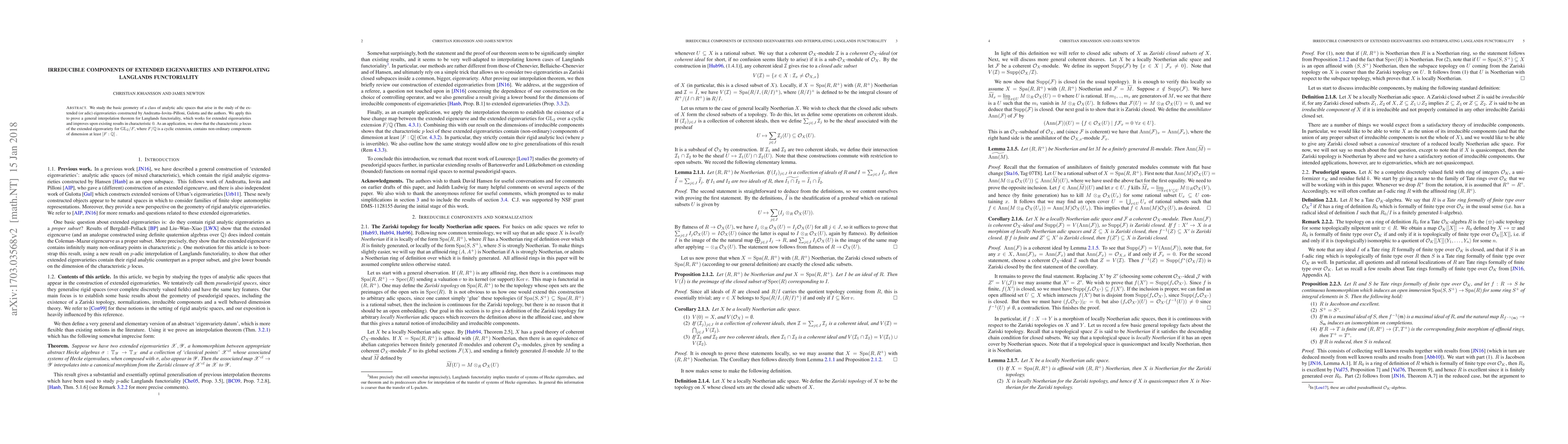 This paper investigates the geometry of analytic adic spaces related to extended eigenvarieties, proving a new interpolation theorem for Langlands functoriality that enhances results in characteristic 0. It demonstrates that the characteristic p locus of the extended eigenvariety for GL(2)/F contains non-ordinary components of dimension at least [F:Q].