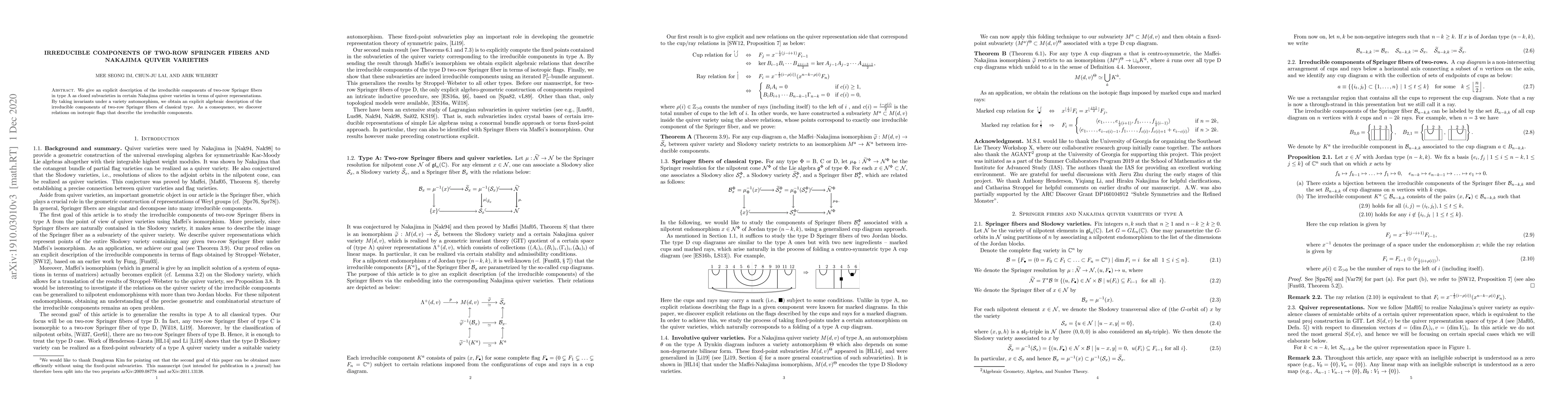 This paper explicitly describes the irreducible components of two-row Springer fibers in terms of quiver representations within Nakajima quiver varieties. It also uncovers relations on isotropic flags that characterize these components.