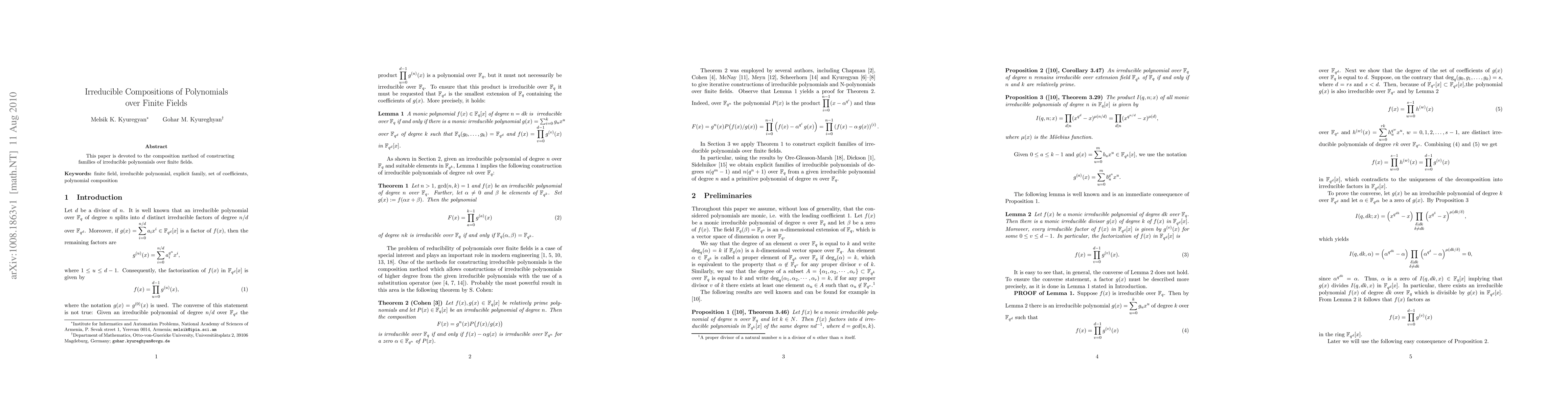 The paper studies constructions of irreducible polynomials over finite fields using polynomial composition method.
