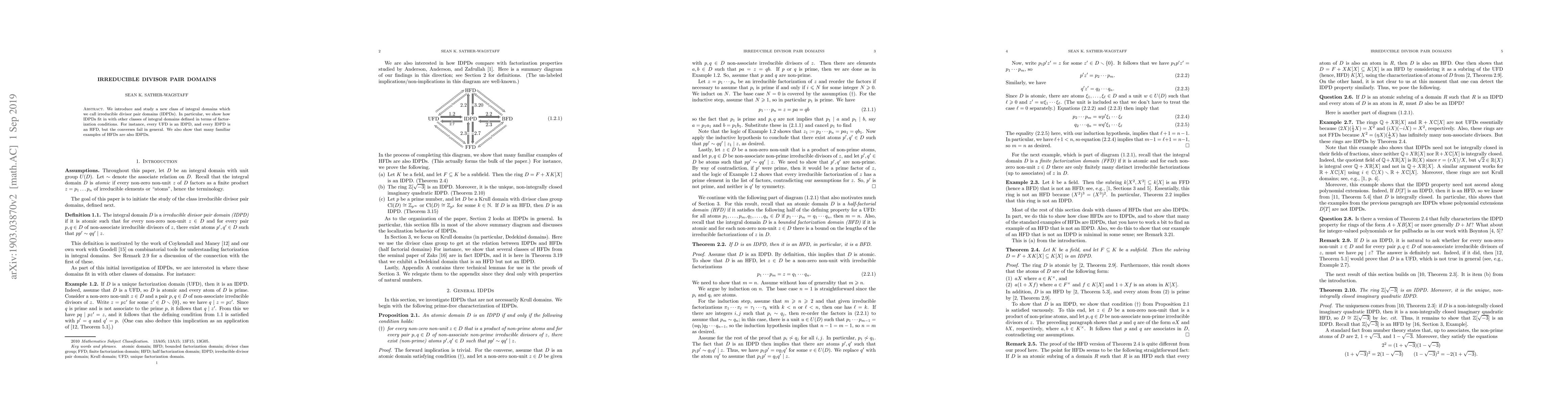 Researchers introduce a new class of integral domains called irreducible divisor pair domains (IDPDs), which includes UFDs as a subset. IDPDs have implications for understanding factorization conditions in algebra.