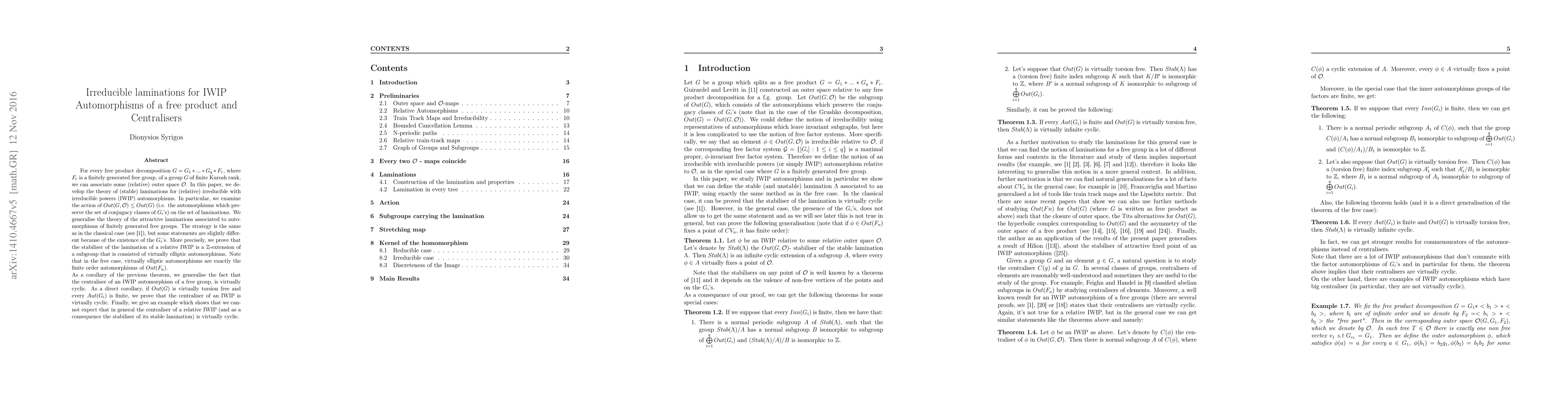 Researchers develop a theory of laminations for irreducible with irreducible powers (IWIP) automorphisms in free products of groups, showing that the centraliser is virtually cyclic under specific conditions.