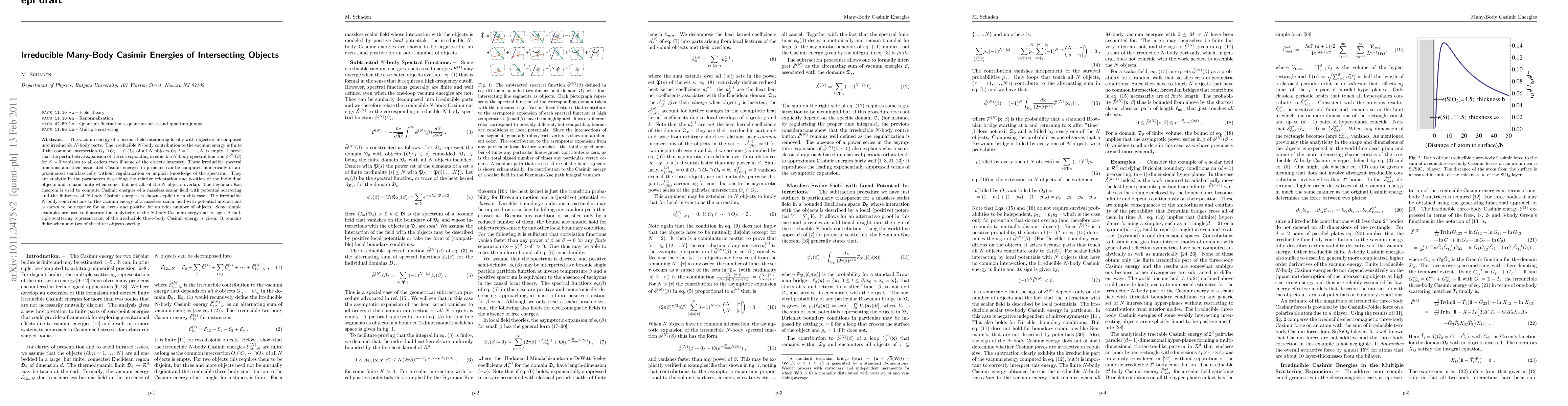 This paper decomposes the vacuum energy of a bosonic field interacting with intersecting objects into irreducible $N$-body parts, proving that the corresponding spectral functions vanish to all orders even if some objects overlap. The study shows that these irreducible Casimir energies remain finite and can be computed analytically or semiclassically, with the sign of the energy depending on the number of objects.