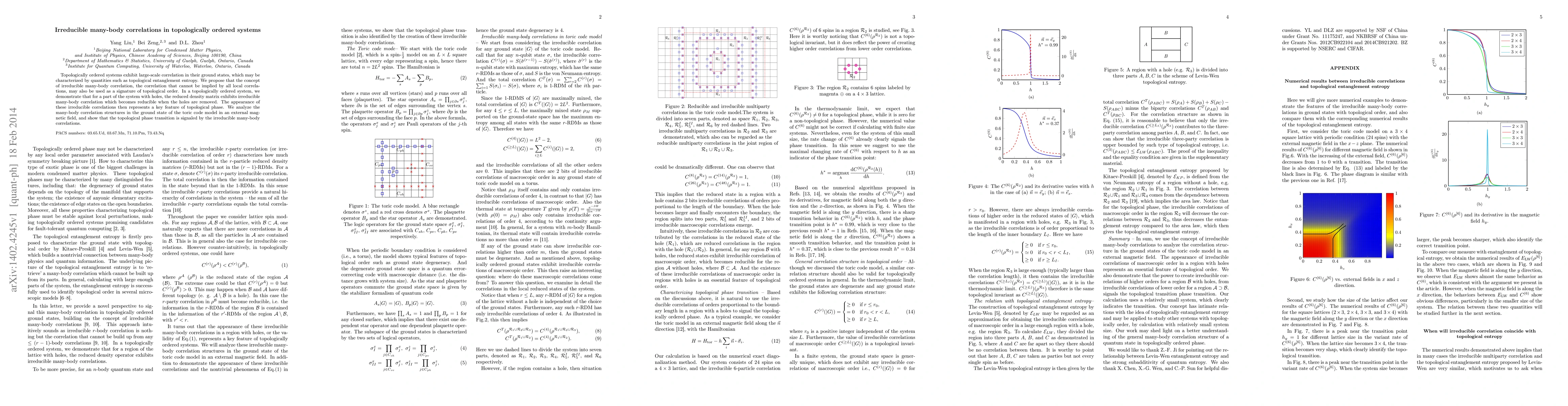 This paper proposes that irreducible many-body correlations, which cannot be inferred from local correlations, serve as a signature of topological order in topologically ordered systems. It demonstrates that these correlations become reducible when holes in the system are removed, highlighting their role in characterizing topological phases.