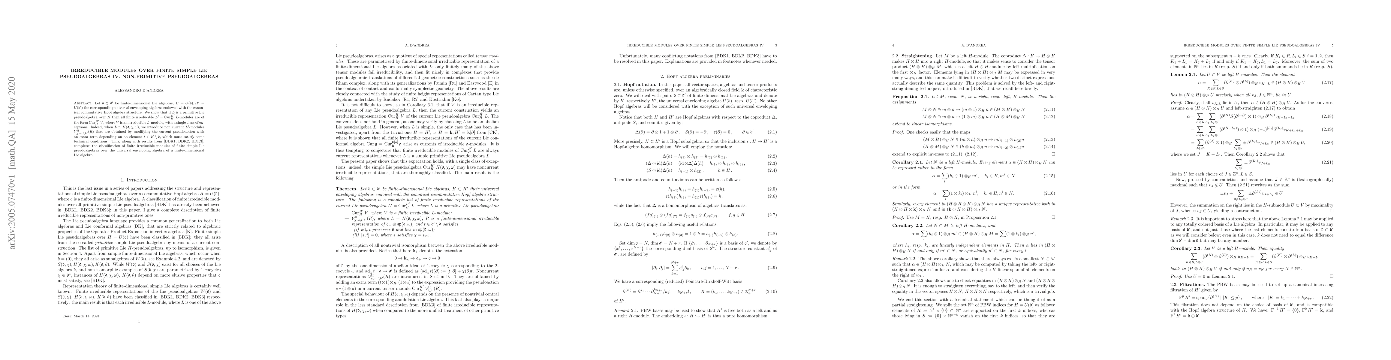 Let d \subset d' be finite-dimensional Lie algebras, H = U(d), H'=U(d') the corresponding universal enveloping algebras endowed with the cocommutative Hopf algebra structure. We show that if L is a primitive Lie pseudoalgebra over H then all finite irreducible L' = Cur_H^{H'} L-modules are of the form Cur_H^{H'} V, where V is an irreducible L-module, with a single class of exceptions. Indeed, when L = H(d, \chi, \omega), we introduce non current L'-modules that are obtained by modifying the current pseudoaction with an extra term depending on an element t \in \d' \setminus d, which must satisfy some technical conditions. This, along with results from [BDK1, BDK2, BDK3], completes the classification of finite irreducible modules of finite simple Lie pseudoalgebras over the universal enveloping algebra of a finite-dimensional Lie algebra.