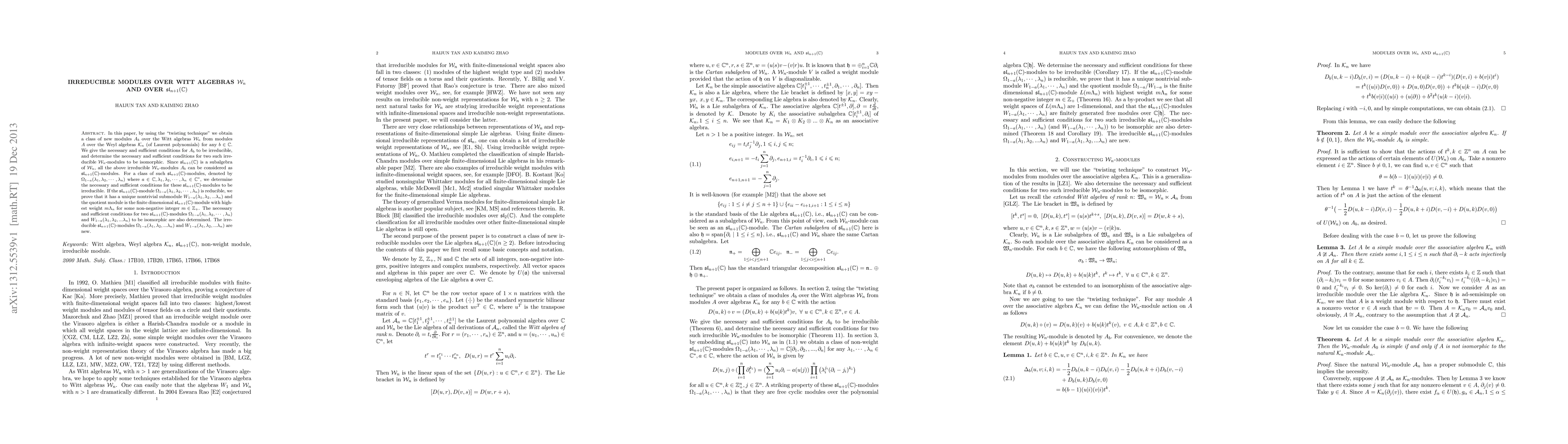 This paper introduces new irreducible modules $A_b$ over Witt algebras $\mathcal{W}_n$ derived from Weyl algebra modules using the "twisting technique." It establishes conditions for their irreducibility and isomorphism, and extends these results to $\mathfrak{sl}_{n+1}(\mathbb{C})$-modules, determining conditions for their irreducibility and structure when reducible.