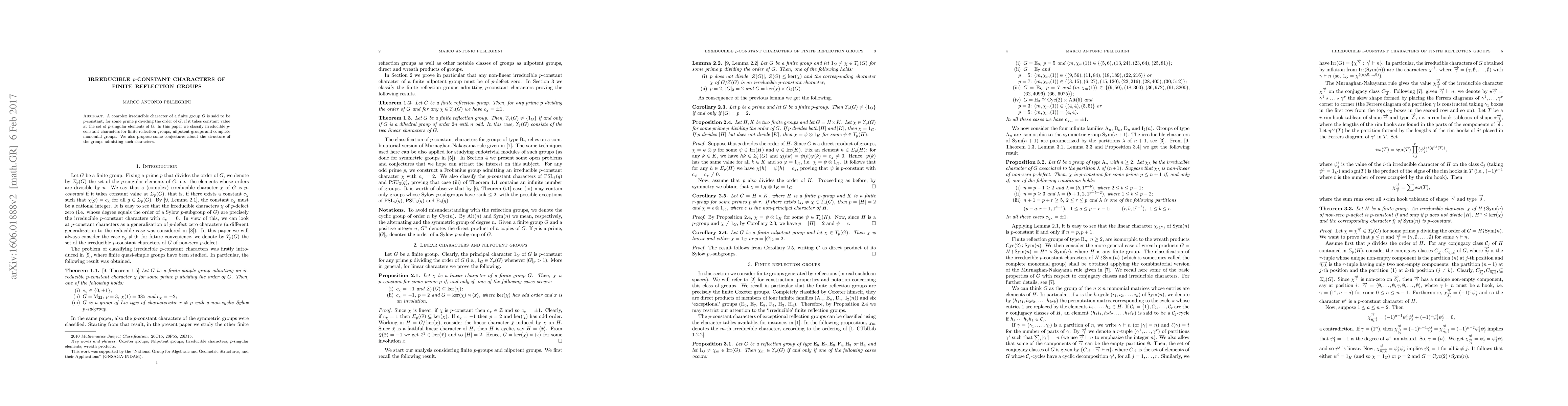 This paper classifies irreducible p-constant characters for finite reflection groups, nilpotent groups, and complete monomial groups, and proposes conjectures regarding the structural features of groups that allow such characters.