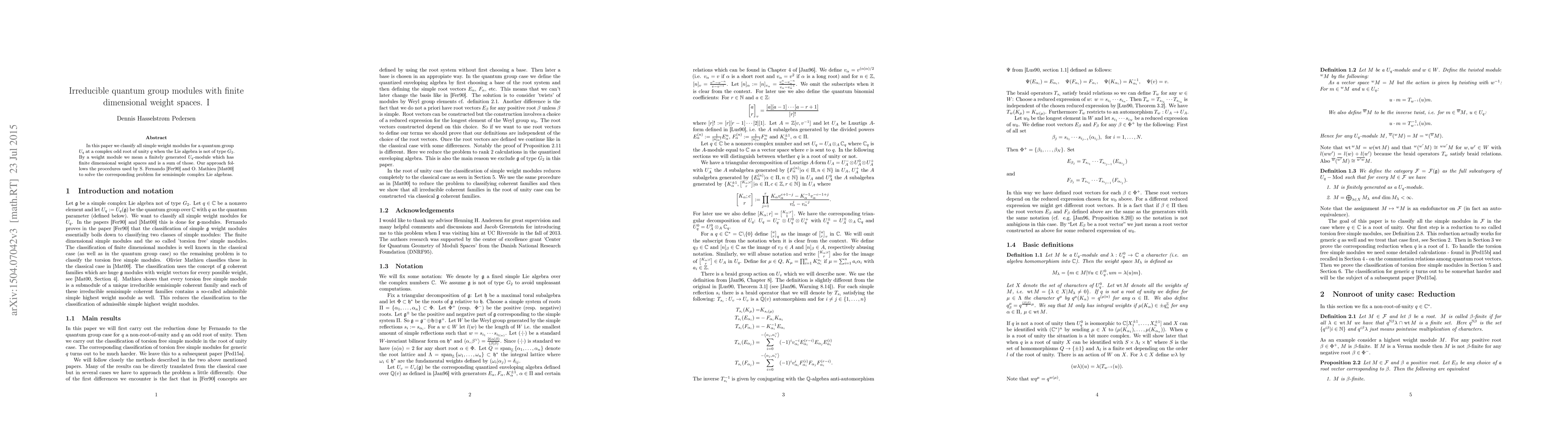 This paper classifies simple weight modules for the quantum group $U_q$ at a complex root of unity $q$, excluding type $G_2$ Lie algebras, by adapting methods used for semisimple complex Lie algebras. The focus is on finitely generated $U_q$-modules with finite-dimensional weight spaces.