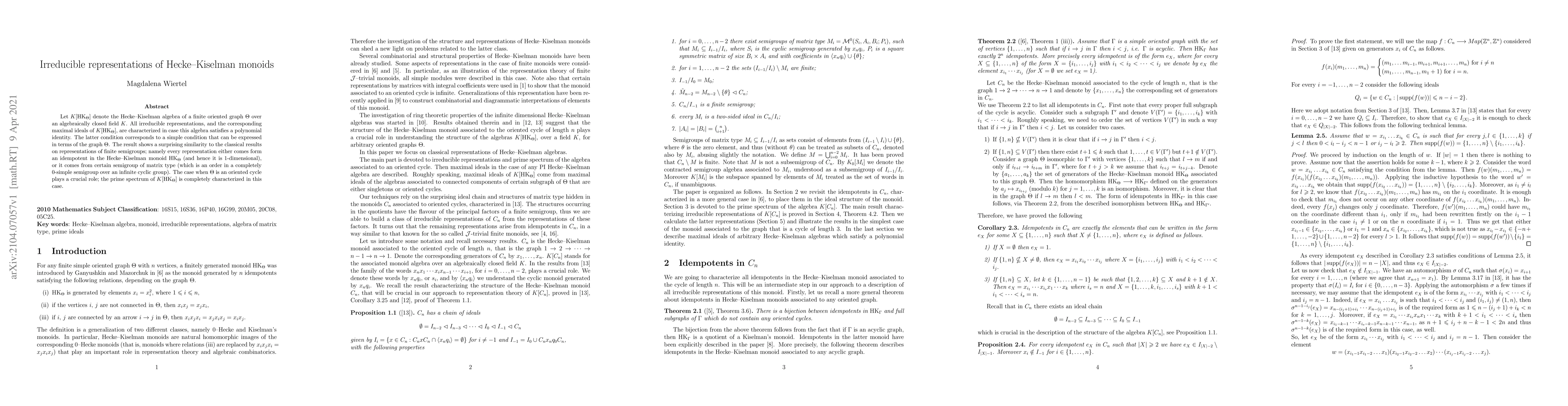 Let $K[HK_{\Theta}]$ denote the Hecke-Kiselman algebra of a finite oriented graph $\Theta$ over an algebraically closed field $K$. All irreducible representations, and the corresponding maximal ideals of $K[HK_{\Theta}]$, are characterized in case this algebra satisfies a polynomial identity. The latter condition corresponds to a simple condition that can be expressed in terms of the graph $\Theta$. The result shows a surprising similarity to the classical results on representations of finite semigroups; namely every representation either comes form an idempotent in the Hecke-Kiselman monoid $HK_{\Theta}$ (and hence it is $1$-dimensional), or it comes from certain semigroup of matrix type (which is an order in a completely $0$-simple semigroup over an infinite cyclic group). The case when $\Theta$ is an oriented cycle plays a crucial role; the prime spectrum of $K[HK_{\Theta}]$ is completely characterized in this case.