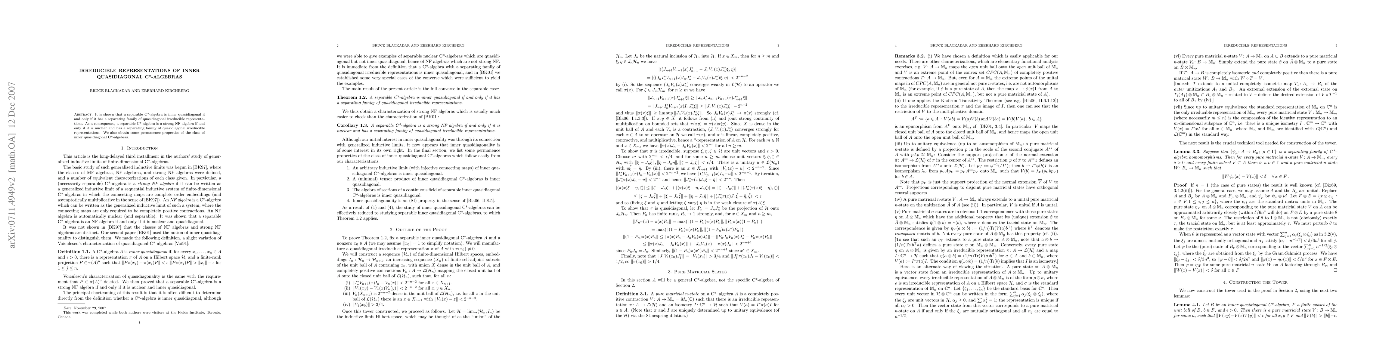 It is shown that a separable C*-algebra is inner quasidiagonal if and only if it has a separating family of quasidiagonal irreducible representations. As a consequence, a separable C*-algebra is a strong NF algebra if and only if it is nuclear and has a separating family of quasidiagonal irreducible representations. We also obtain some permanence properties of the class of inner quasidiagonal C*-algebras.