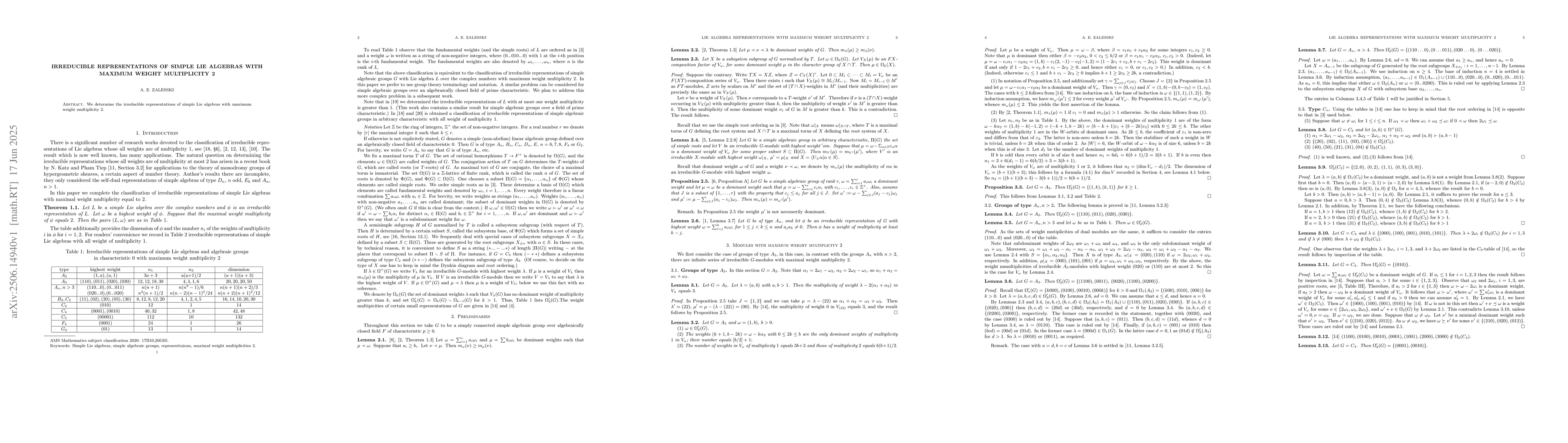We determine the irreducible representations of simple Lie algebras with maximum weight multiplicity 2.
