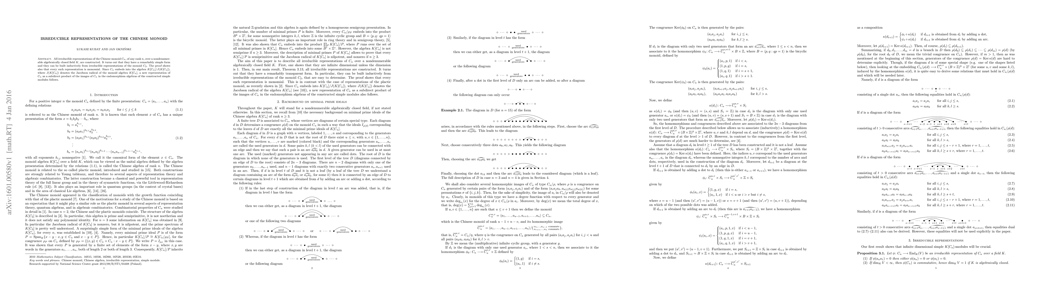 This paper constructs all irreducible representations of the Chinese monoid $C_n$ over a nondenumerable algebraically closed field $K$, revealing their simple, inductively built form from $C_2$ representations, and proves their monomial nature. It also introduces a new representation of $C_n$ as a subdirect product in endomorphism algebras of the constructed simple modules.
