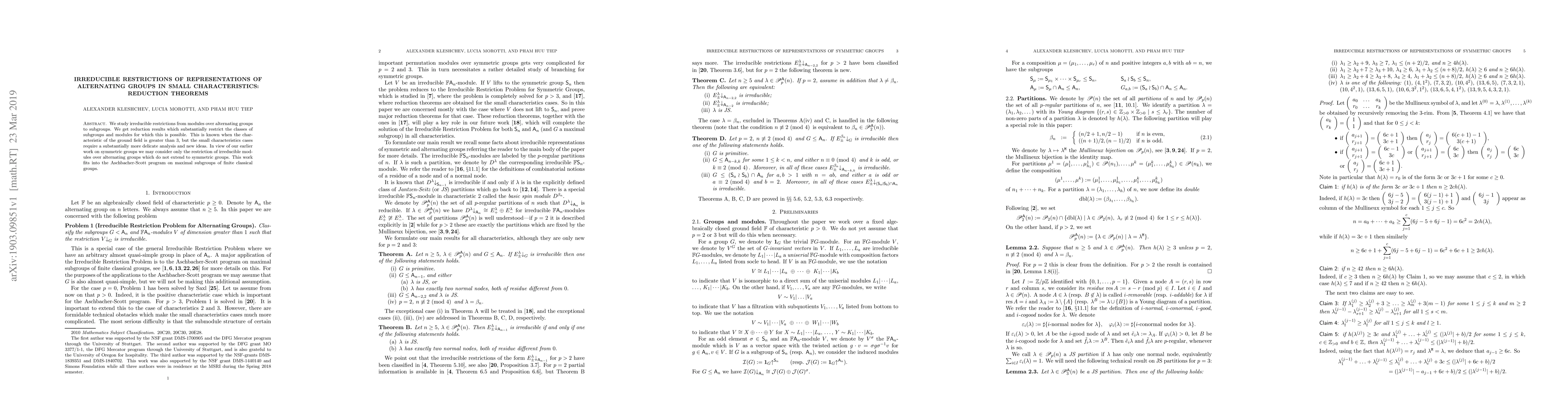 We study irreducible restrictions from modules over alternating groups to subgroups. We get reduction results which substantially restrict the classes of subgroups and modules for which this is possible. This is known when the characteristic of the ground field is greater than $3$, but the small characteristics cases require a substantially more delicate analysis and new ideas. In view of our earlier work on symmetric groups we may consider only the restriction of irreducible modules over alternating groups which do not extend to symmetric groups. This work fits into the Aschbacher-Scott program on maximal subgroups of finite classical groups.