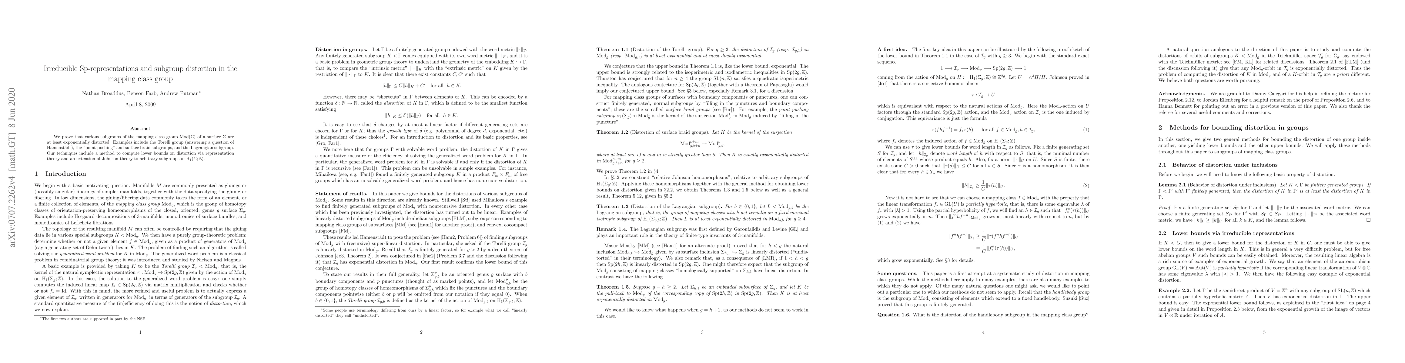 New methods in representation theory and group cohomology are used to establish these findings, shedding light on subgroup distortion in the mapping class group.