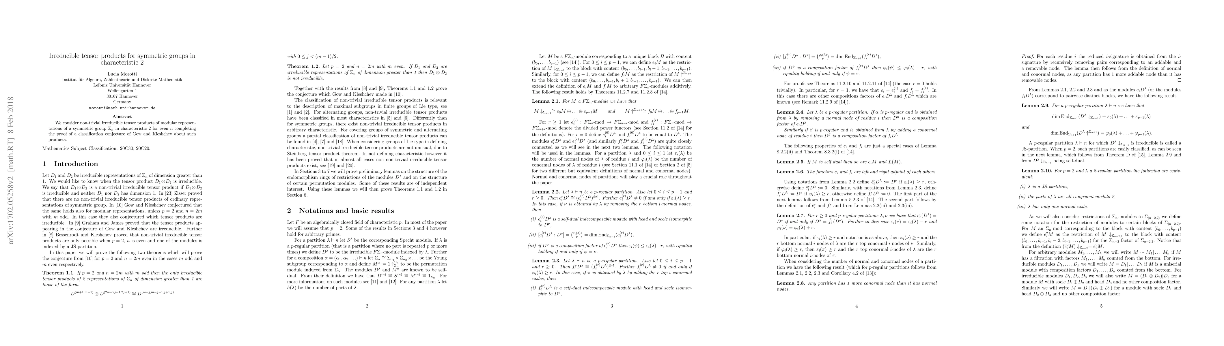 This paper proves a classification conjecture regarding non-trivial irreducible tensor products of modular representations of symmetric groups $S_n$ in characteristic 2 for even $n$. It completes the proof of a longstanding conjecture by Gow and Kleshchev.