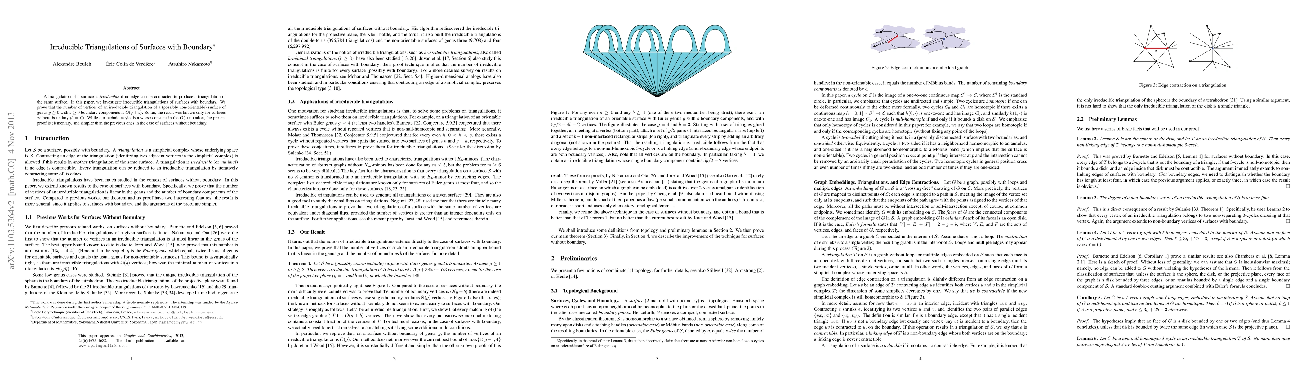 This paper investigates irreducible triangulations of surfaces with boundary, proving that the number of vertices in such triangulations is O(g+b) for surfaces of genus g and b boundaries. This extends previous results for surfaces without boundary, with a simpler elementary proof.
