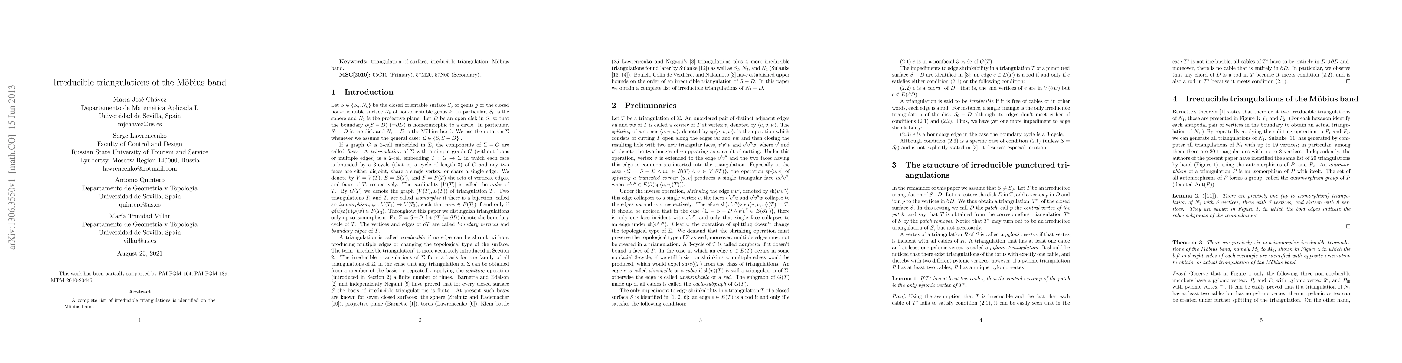Summary: The research provides a comprehensive classification of irreducible triangulations on the Möbius band, contributing to the understanding of its geometric and topological properties. This work aids in exploring the band's combinatorial structure.
