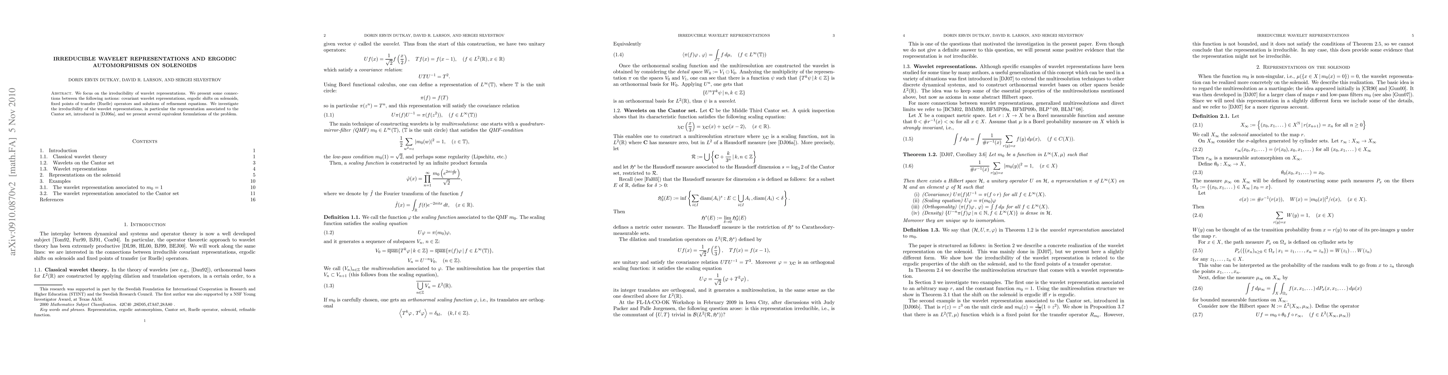 Researchers investigate the irreducibility of wavelet representations on solenoids, a mathematical concept that can help understand complex systems, and explore connections to other areas like ergodic theory.