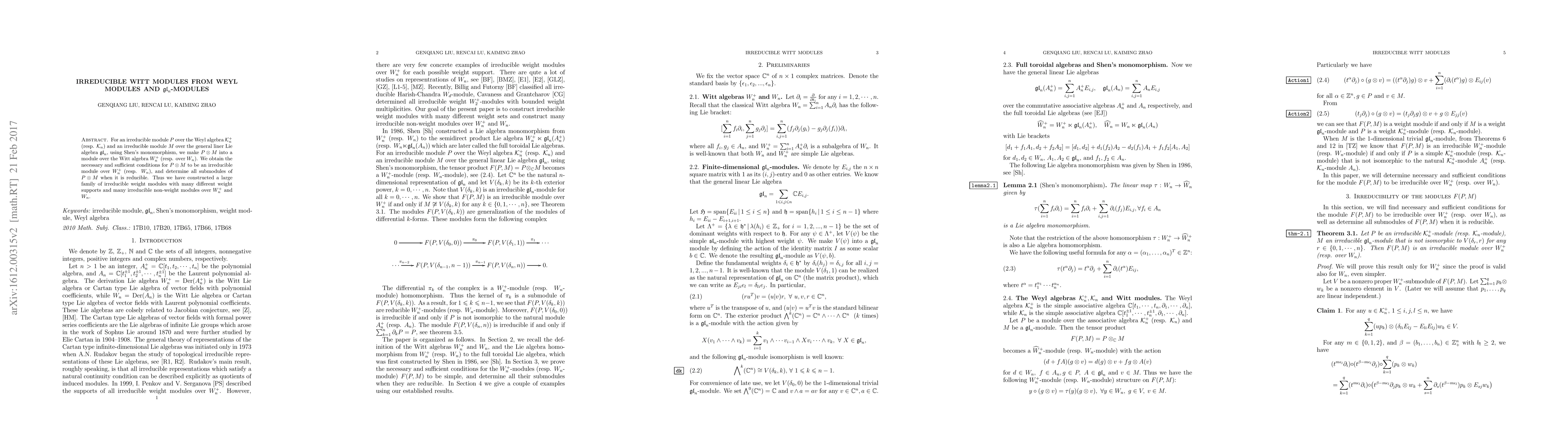 This paper constructs irreducible Witt modules from tensor products of irreducible modules over the Weyl algebra and $\mathfrak{gl}_n$ using Shen's monomorphism. It provides conditions for the tensor product to remain irreducible and identifies all submodules when it is reducible, leading to a diverse family of irreducible modules.