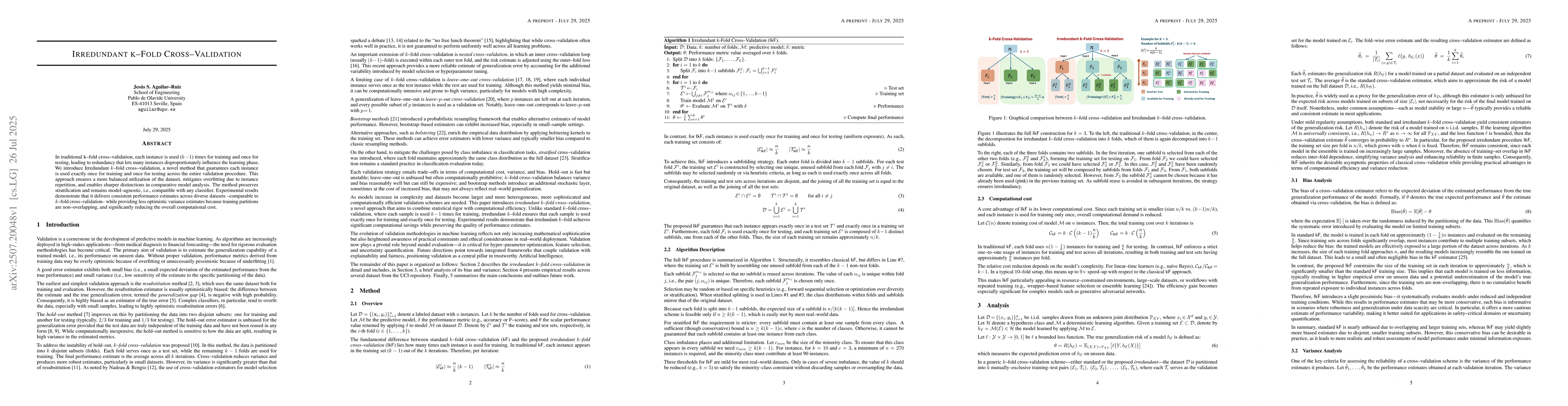 The research introduces Irredundant k-fold Cross-Validation (IkF), a method ensuring each instance is used exactly once for training and testing across the entire validation procedure, contrasting with traditional k-fold cross-validation that allows for redundancy.