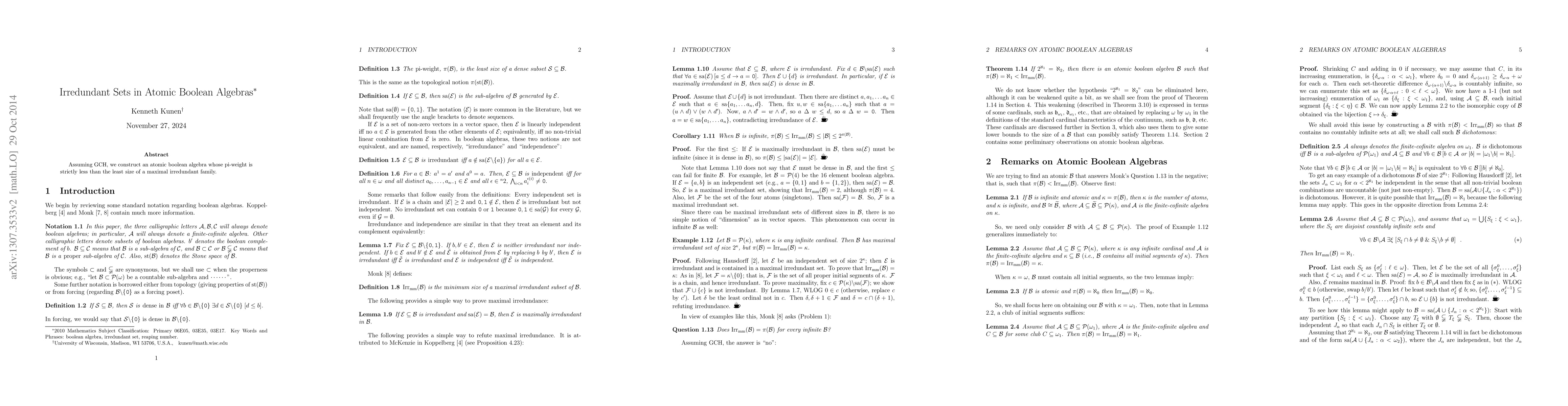 Assuming GCH, we construct an atomic boolean algebra whose pi-weight is strictly less than the least size of a maximal irredundant family.
