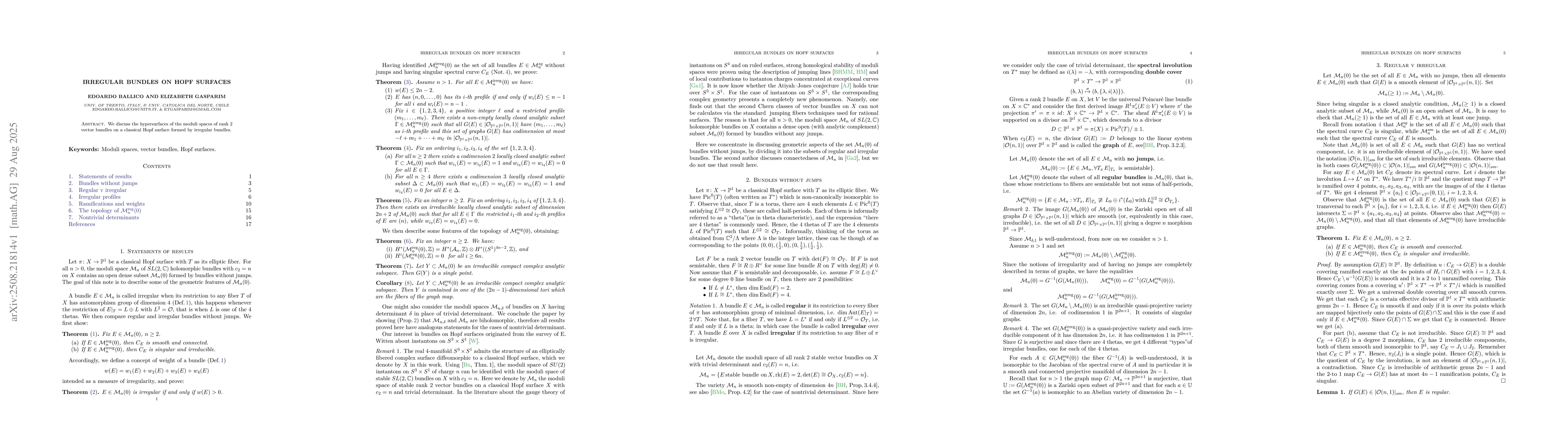 We discuss the hypersurfaces of the moduli spaces of rank $2$ vector bundles on a classical Hopf surface formed by irregular bundles.