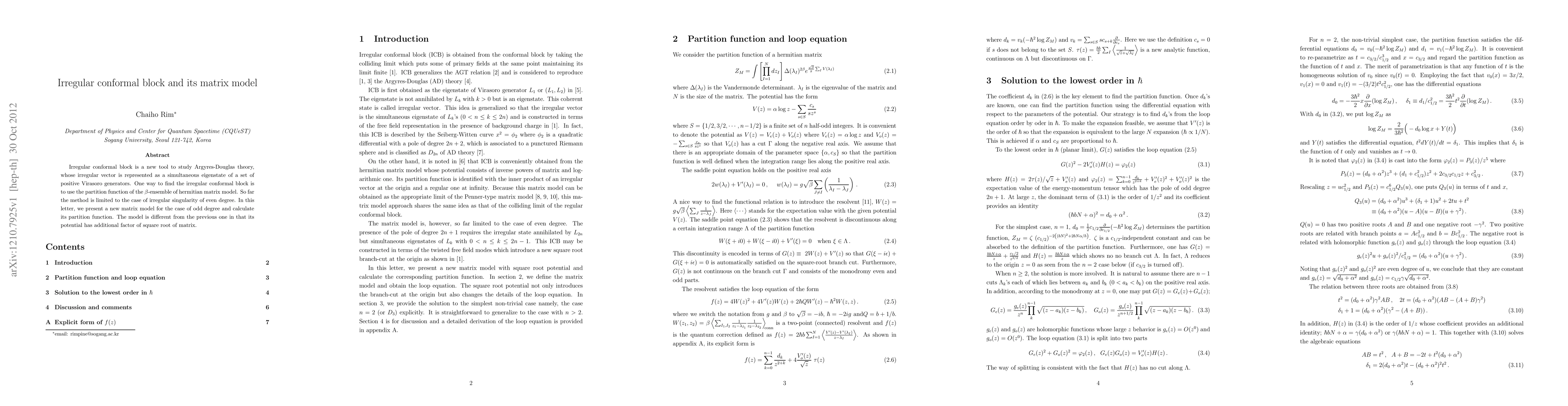 This paper introduces a new matrix model to compute irregular conformal blocks for Argyres-Douglas theory, specifically for cases with odd-degree irregular singularities. The new model differs from previous ones by incorporating a square root factor in the potential.