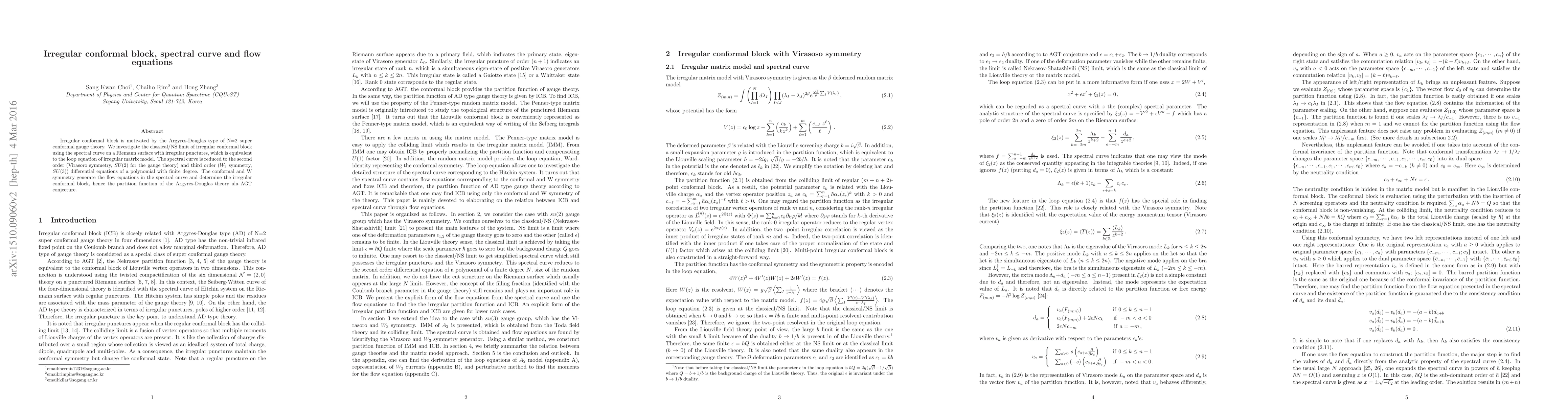 This paper explores the classical/NS limit of the irregular conformal block in N=2 super conformal gauge theory, using spectral curves on Riemann surfaces with irregular punctures. It derives second and third-order differential equations from the spectral curve, which generate flow equations determining the irregular conformal block and the partition function of the Argyres-Douglas theory as per the AGT conjecture.