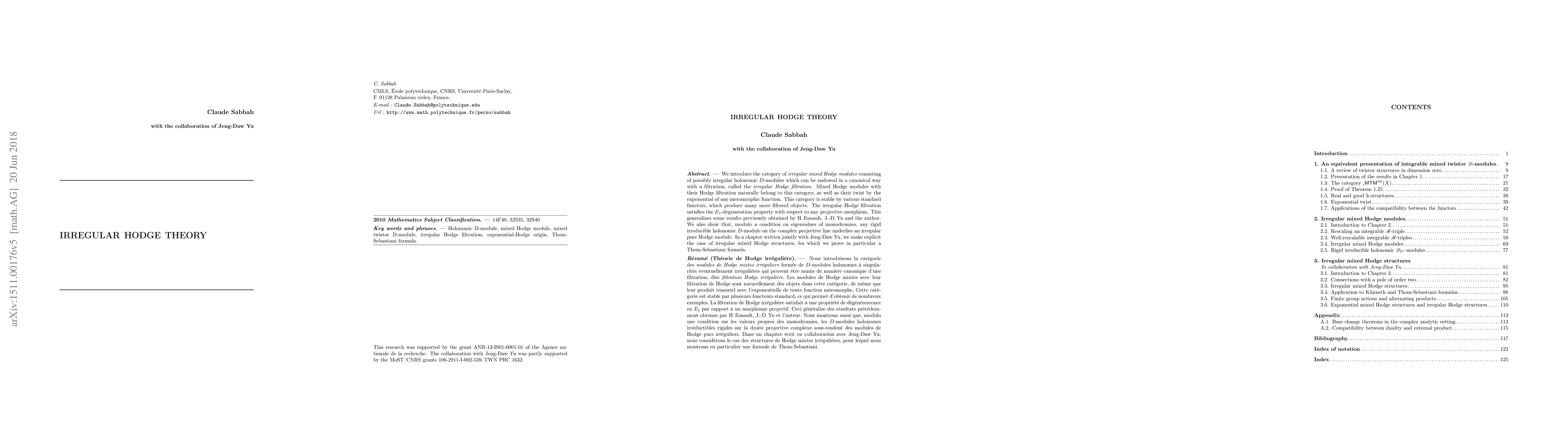 We introduce a category of possibly irregular holonomic D-modules which can be endowed in a canonical way with an irregular Hodge filtration. Mixed Hodge modules with their Hodge filtration naturally belong to this category, as well as their twist by $\exp\varphi$ for any meromorphic function $\varphi$. This category is stable by various standard functors, which produce many more filtered objects. The irregular Hodge filtration satisfies the $E_1$-degeneration property by a projective morphism. This generalizes some results proved by Esnault-Sabbah-Yu arxiv:1302.4537 and Sabbah-Yu arxiv:1406.1339. We also show that those rigid irreducible holonomic D-modules on the complex projective line whose local formal monodromies have eigenvalues of absolute value one, are equipped with such an irregular Hodge filtration in a canonical way, up to a shift of the filtration. In a chapter written jointly with Jeng-Daw~Yu, we make explicit the case of irregular mixed Hodge structures, for which we prove in particular a Thom-Sebastiani formula.