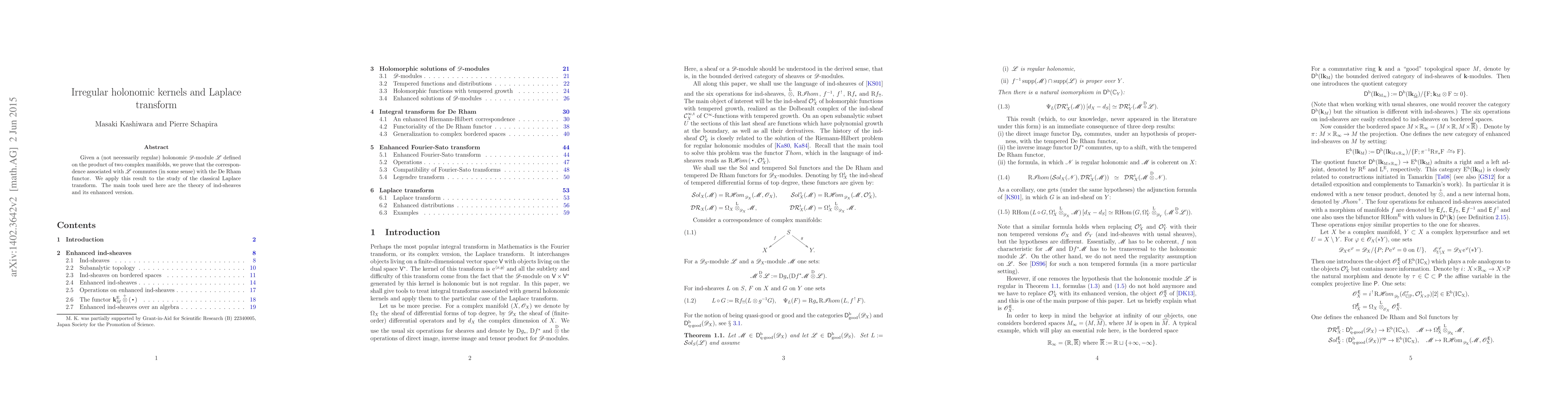 Given a (not necessarily regular) holonomic D-module defined on the product of two complex manifolds, we prove that the associated correspondence commutes (in some sense) with the De Rham functor. We apply this result to the study of the classical Laplace transform. The main tools used here are the theory of ind-sheaves and its enhanced version.