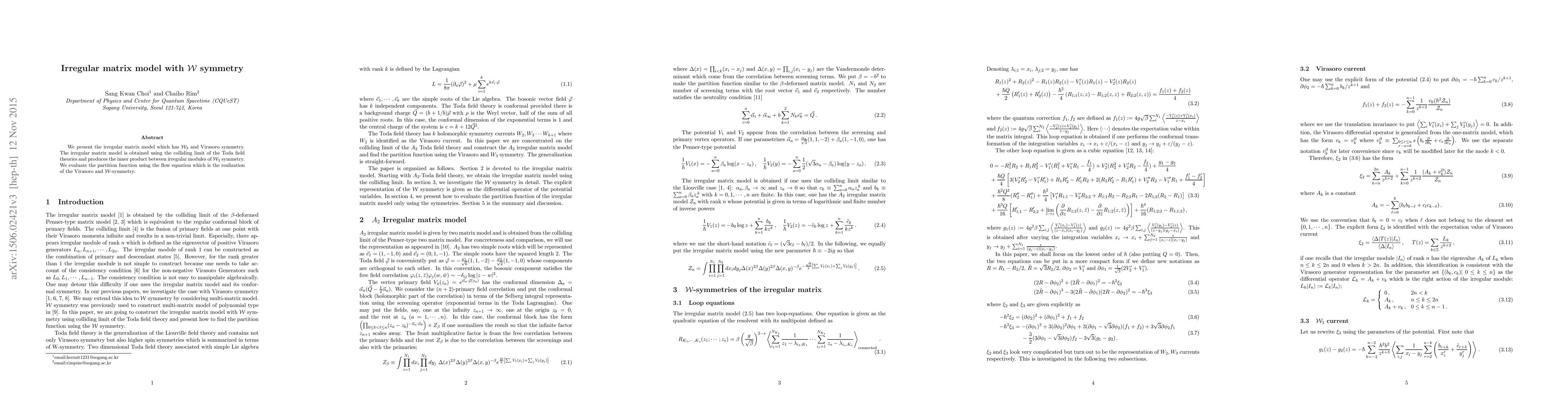 We present the irregular matrix model which has contains $\mathcal{W}_3$ and Virasoro symmetry. The irregular matrix model is obtained using the colliding limit of the Toda field theories and produces the inner product between irregular modules of $\mathcal{W}_3$ symmetry. We evaluate the partition function using the flow equation which is the realization of the Virasoro and $\mathcal{W}$-symmetry.