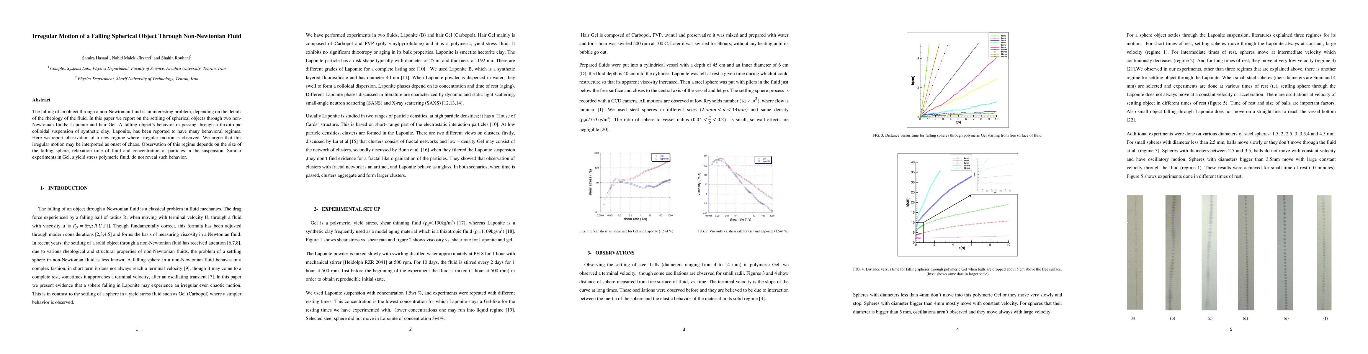 This paper investigates the irregular motion of a falling spherical object through two non-Newtonian fluids, Laponite and hair Gel, identifying a new chaotic regime in Laponite dependent on sphere size, fluid relaxation time, and particle concentration. In contrast, Gel does not exhibit such behavior.