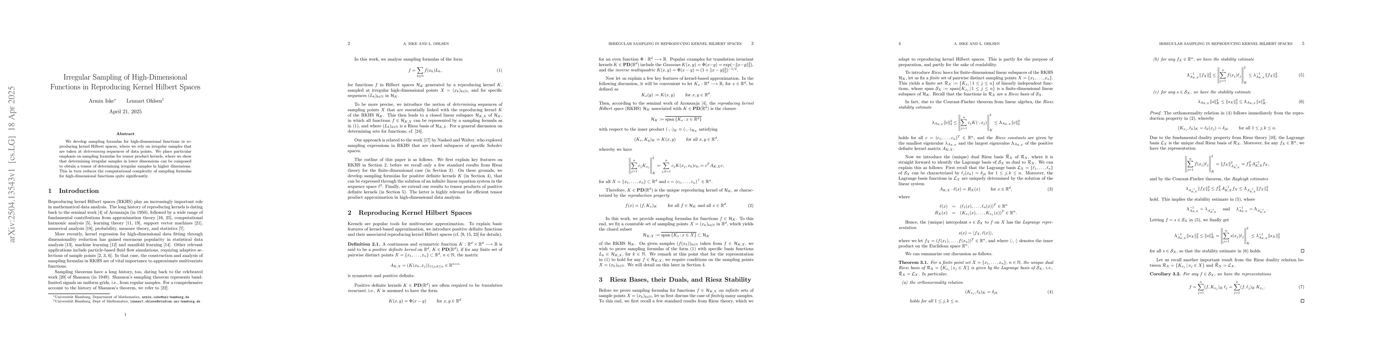 The paper develops sampling formulas for high-dimensional functions in reproducing kernel Hilbert spaces using irregular samples at determining sequences of data points, with a focus on tensor product kernels.