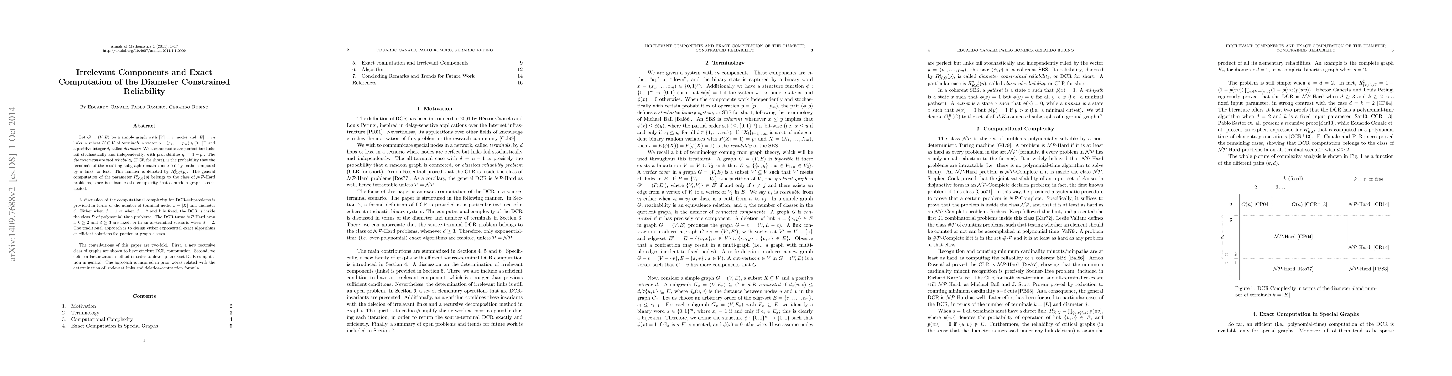 Researchers developed a new method for exactly computing the reliability of diameter-constrained subgraphs in complex networks, with potential applications in fields like telecommunications and transportation, by identifying irrelevant components and creating a factorization framework.