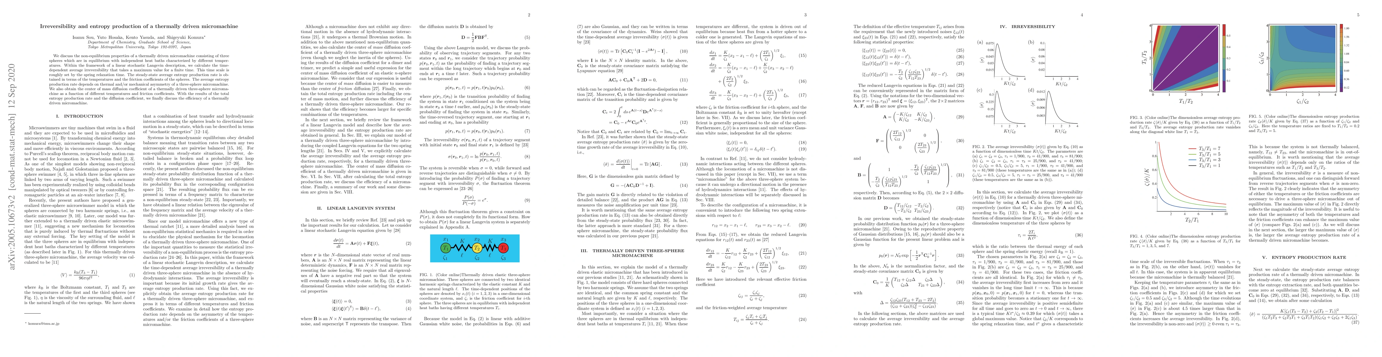 This paper investigates the non-equilibrium thermodynamics of a thermally driven micromachine composed of three spheres in contact with different heat baths. The study calculates the time-dependent average irreversibility and steady-state entropy production, revealing the efficiency and thermal asymmetry effects on the system's performance.