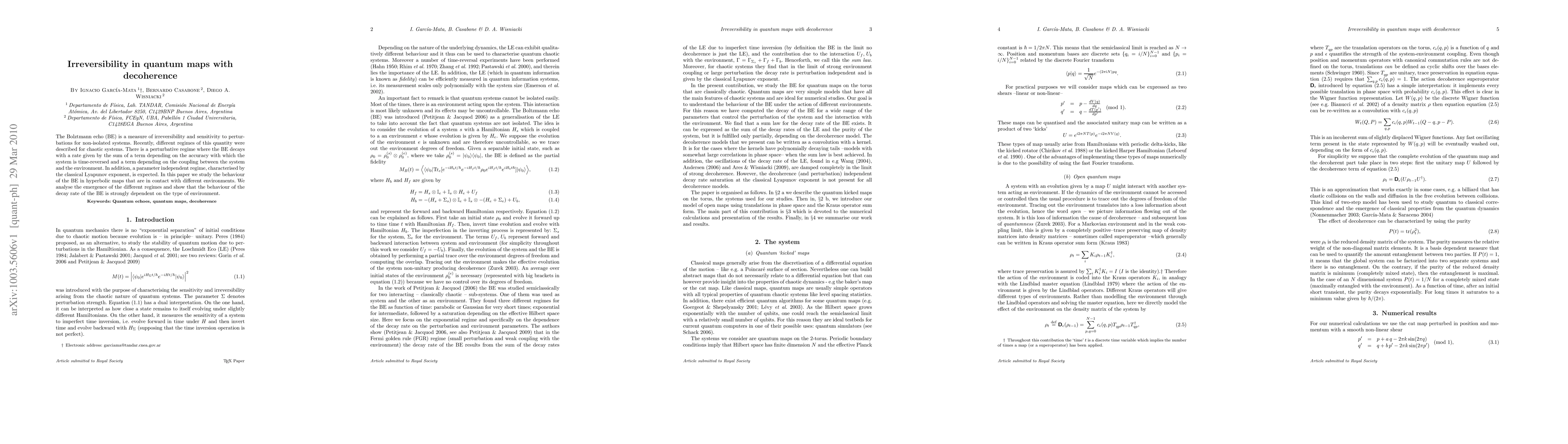 This paper investigates the Boltzmann echo (BE) in quantum maps influenced by decoherence, revealing distinct decay regimes based on the system's environment. The study shows that the BE's decay rate depends significantly on whether the environment induces a perturbative or parameter-independent regime, characterized by the classical Lyapunov exponent.
