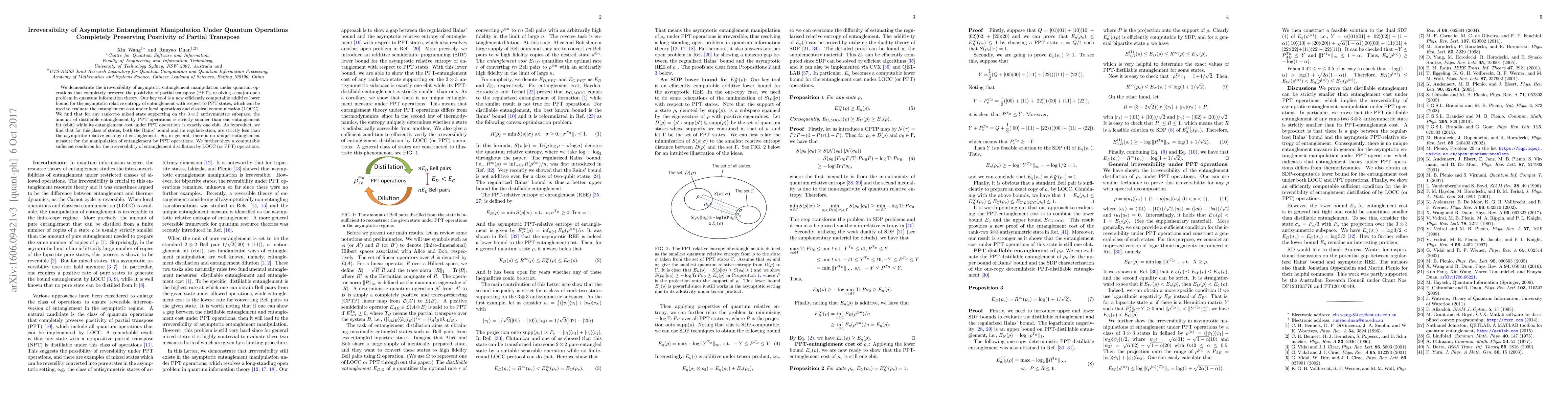 This paper resolves a longstanding issue in quantum information theory by proving the irreversibility of entanglement manipulation under quantum operations that preserve the positivity of partial transpose (PPT). It introduces a new computable lower bound for the asymptotic relative entropy of entanglement, revealing that distillable entanglement for certain rank-two mixed states is less than one ebit despite an entanglement cost of one ebit, indicating no unique entanglement measure for PPT operations.