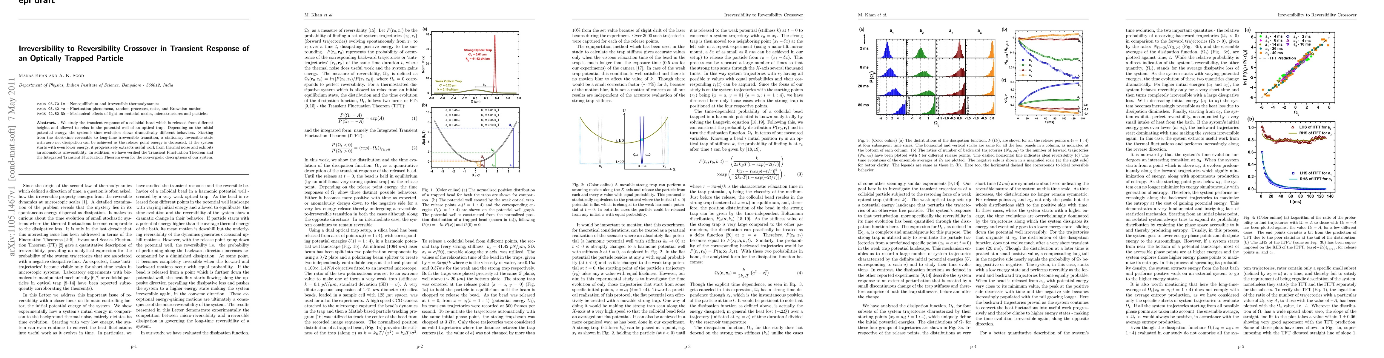 We study the transient response of a colloidal bead which is released from different heights and allowed to relax in the potential well of an optical trap. Depending on the initial potential energy, the system's time evolution shows dramatically different behaviors. Starting from the short-time reversible to long-time irreversible transition, a stationary reversible state with zero net dissipation can be achieved as the release point energy is decreased. If the system starts with even lower energy, it progressively extracts useful work from thermal noise and exhibits an anomalous irreversibility. In addition, we have verified the Transient Fluctuation Theorem and the Integrated Transient Fluctuation Theorem even for the non-ergodic descriptions of our system.
