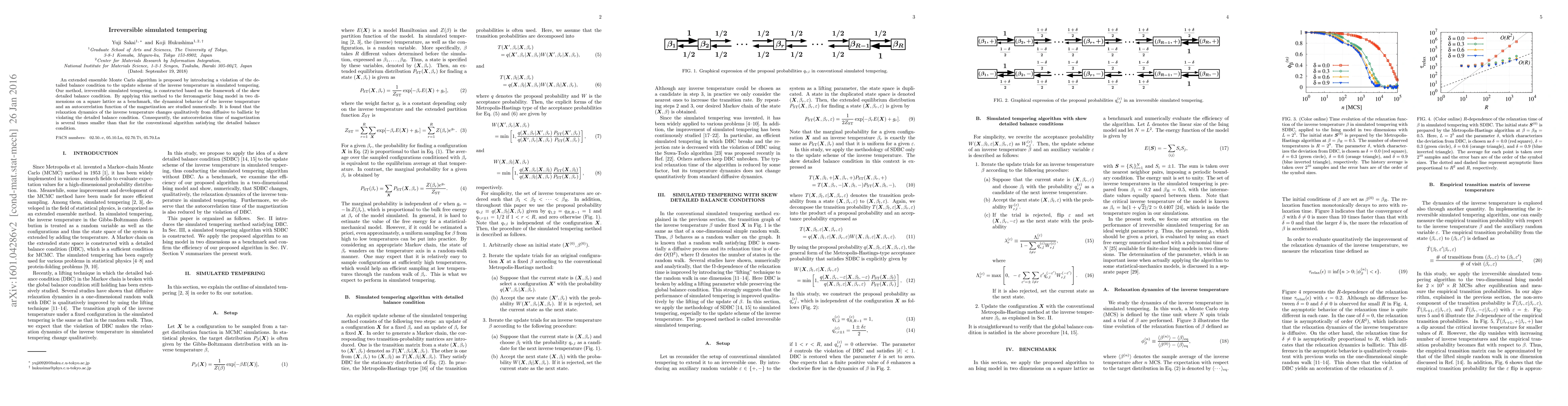 A new method called irreversible simulated tempering is proposed, which breaks the detailed balance condition to accelerate relaxation dynamics in certain simulations. This leads to a significant reduction in autocorrelation time of magnetization in ferromagnetic Ising model simulations.