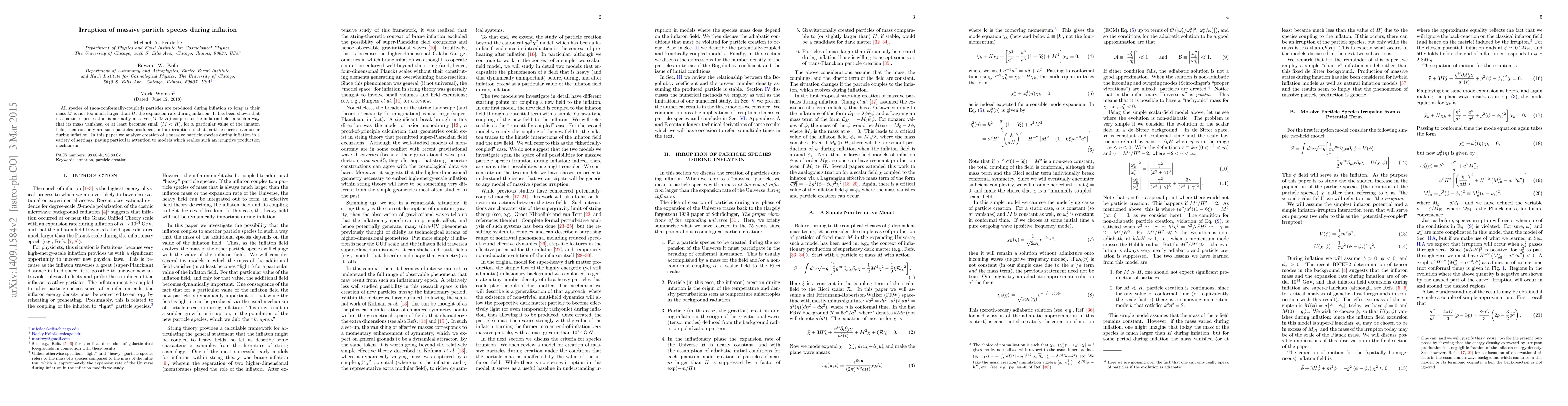 This paper investigates the production of massive particle species during inflation when their mass becomes comparable to the expansion rate, leading to an irruption of these particles. It explores various models where such irruptive production mechanisms can occur, particularly when the mass of a normally massive particle species becomes small due to coupling with the inflaton field.