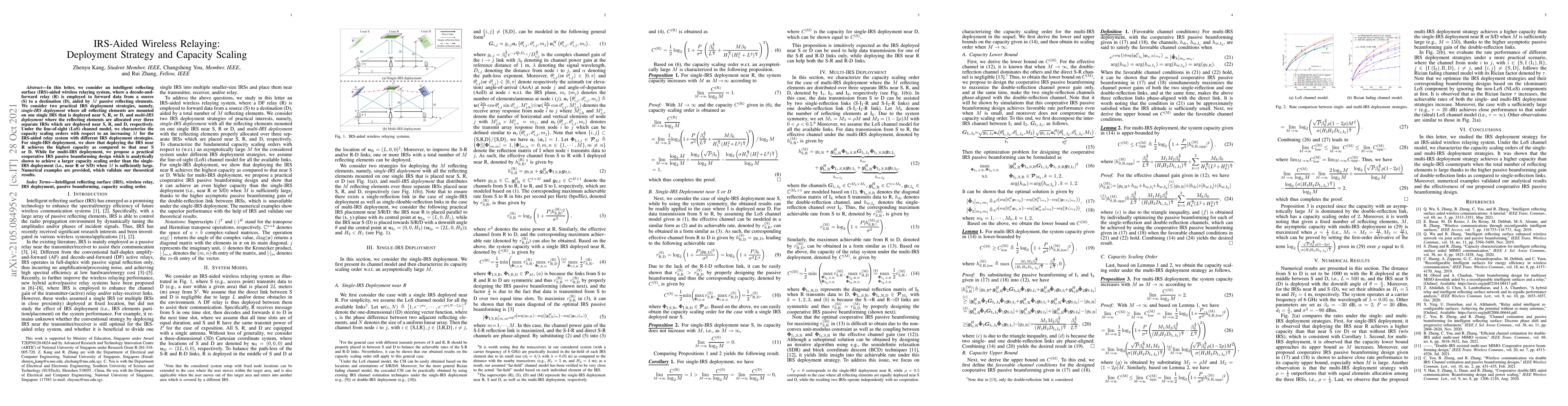 This paper explores IRS-aided wireless relaying systems, comparing single-IRS and multi-IRS deployment strategies to maximize capacity. It finds that deploying the IRS near the relay achieves the highest capacity in single-IRS setups, while multi-IRS deployment with cooperative beamforming offers superior capacity scaling for large numbers of reflecting elements.