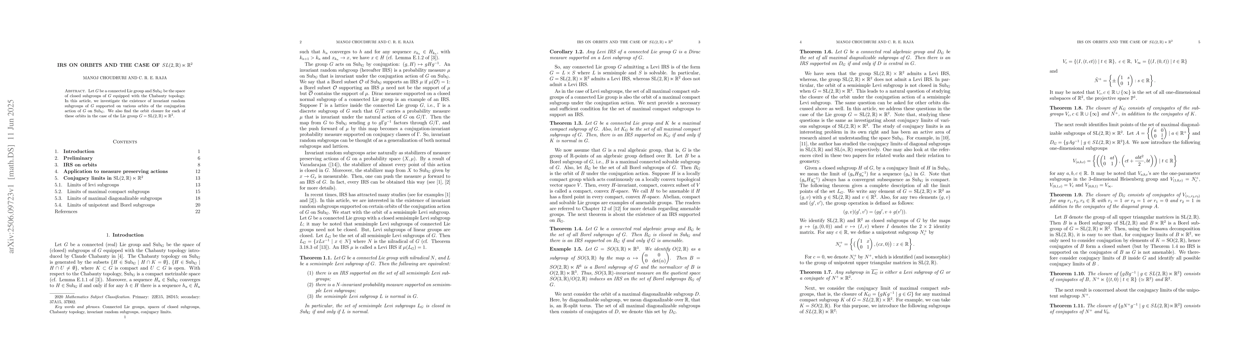 Researchers investigate invariant random subgroups of $SL(2, ho) times ho^2$, focusing on orbit closure for various orbits under conjugation action on closed subgroups.